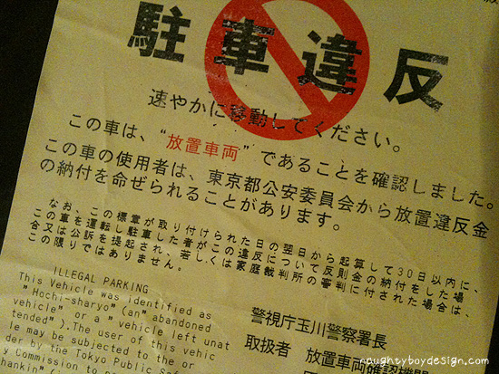 洋服も汚れて最悪なので早く帰ろうと車の方に向かう途中、ロビンが寄り道が多いから 冗談で「車駐禁されたらどうするの〜!」って言い聞かせながら向かっていると、フロントガラスにヒラヒラ舞う紙が・・・