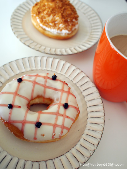 ようやくありついたクリスピードーナツ、本日買ったのは 季節のチェリーのドーナツとノーマルなドーナツをチョイス。散歩後、さっそくドーナツ&コーヒーブレイク。