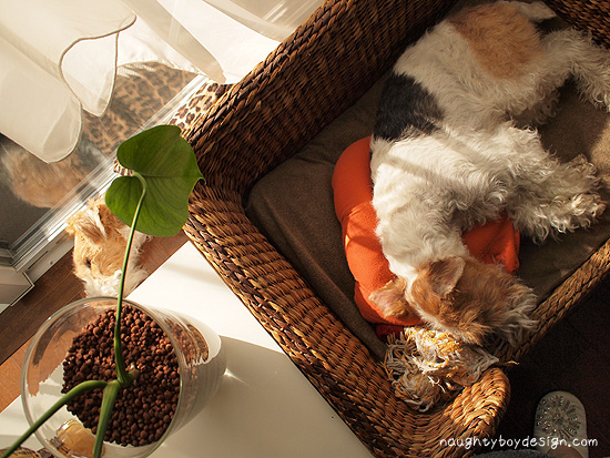 ここが良くお日様があたって、朝の散歩が終わったら二人とも仲良く一緒に寝てるんだけど