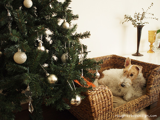でも、いざ飾ってみると最初興奮してツリーの側をウロウロ、ボールを取ろうとがんばってたけど怒られて撃沈。