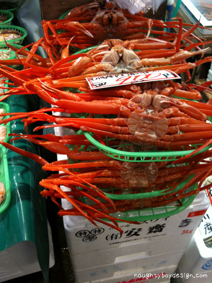 砂浜を走った後は、ペコペコのお腹を満たしに近江町市場へ。